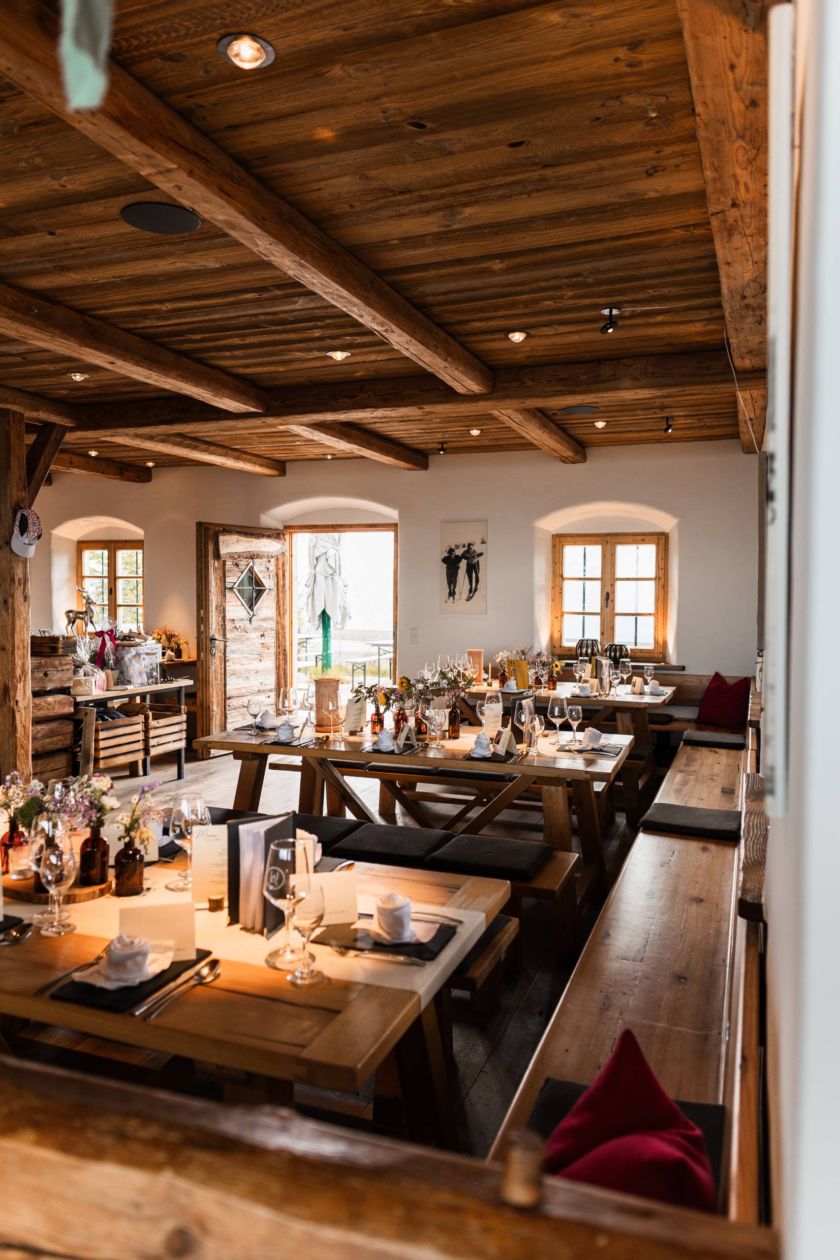 Ihr sucht den passenden Rahmen für eure Firmenfeier oder euer Event? Bei uns genießt ihr ein authentisches Alm-Erlebnis mit Panoramablick. Vom Menü über Musik bis zur Deko – wir gestalten euer Event ganz nach Wunsch. Beamer, Leinwand und Soundsystem sind vorhanden. Die Alm kann exklusiv gemietet werden – ohne Raummiete, nur mit einem fairen Mindestumsatz. Frühzeitige Reservierung lohnt sich, damit der Tag ganz euch gehört.